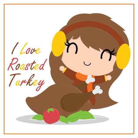感謝祭の日カードのデザイン 壁紙 グリーティング カードのカラフルなボーダー ベクトル漫画イラストをかわいい女の子が まばたき のイラスト素材 ベクタ Image